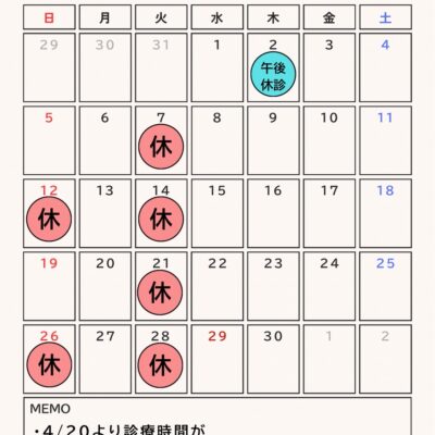※学会などへの出席のため、休診または診察時間を変更する場合があります。