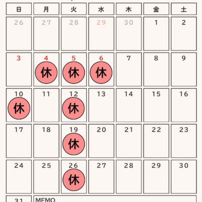 | 午前(8:30~12:00) | ◯ | - | ◯ | ◯ | ◯ | ◯ | ◯ |